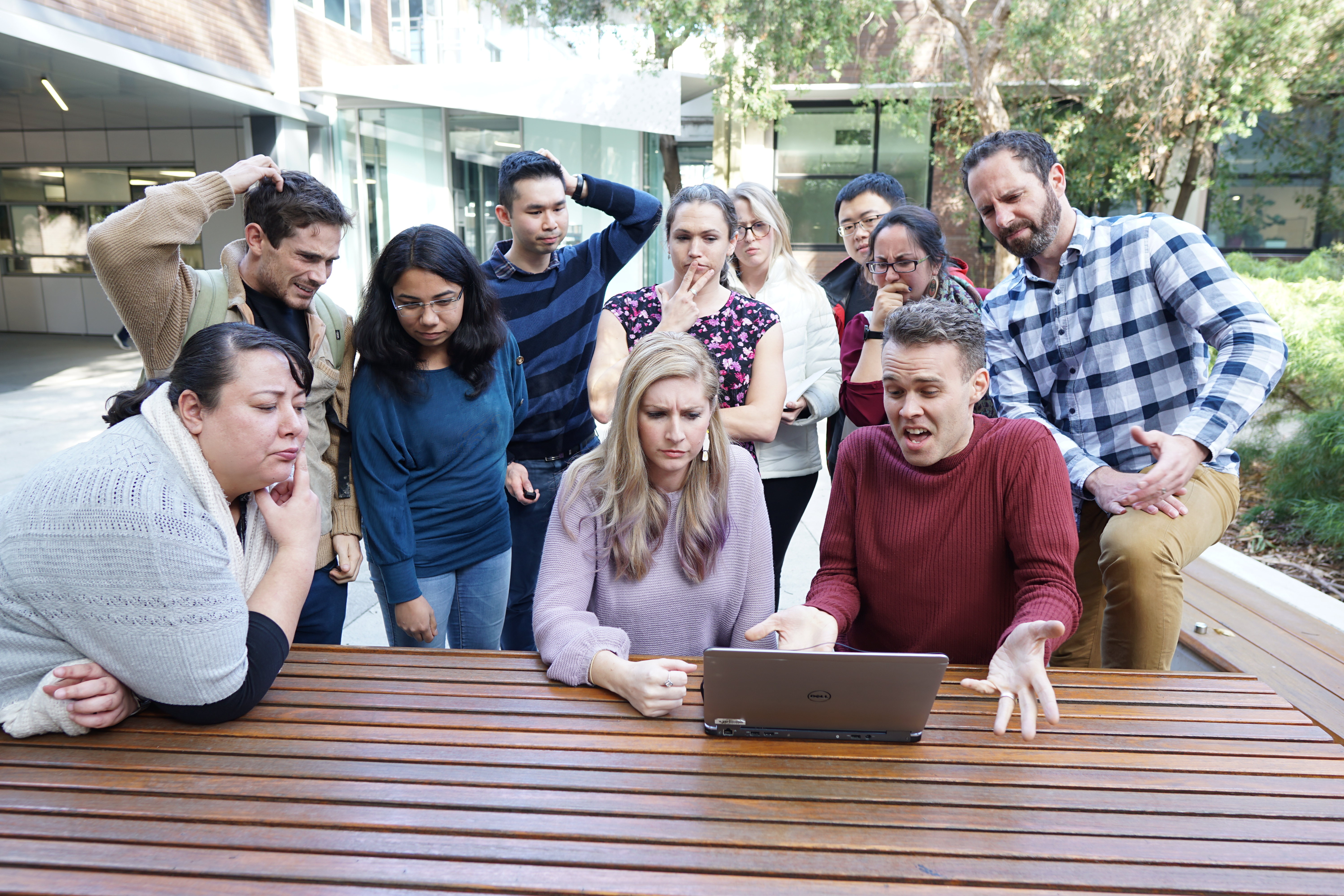 2023 Back L to R: Winston Yee, Amy Dedman, Vanessa Higham, Heather Flores, Anuk Jayashinghe. Front L to R: Damian Dowling, Jade Kannangara, Beau Shrimpton